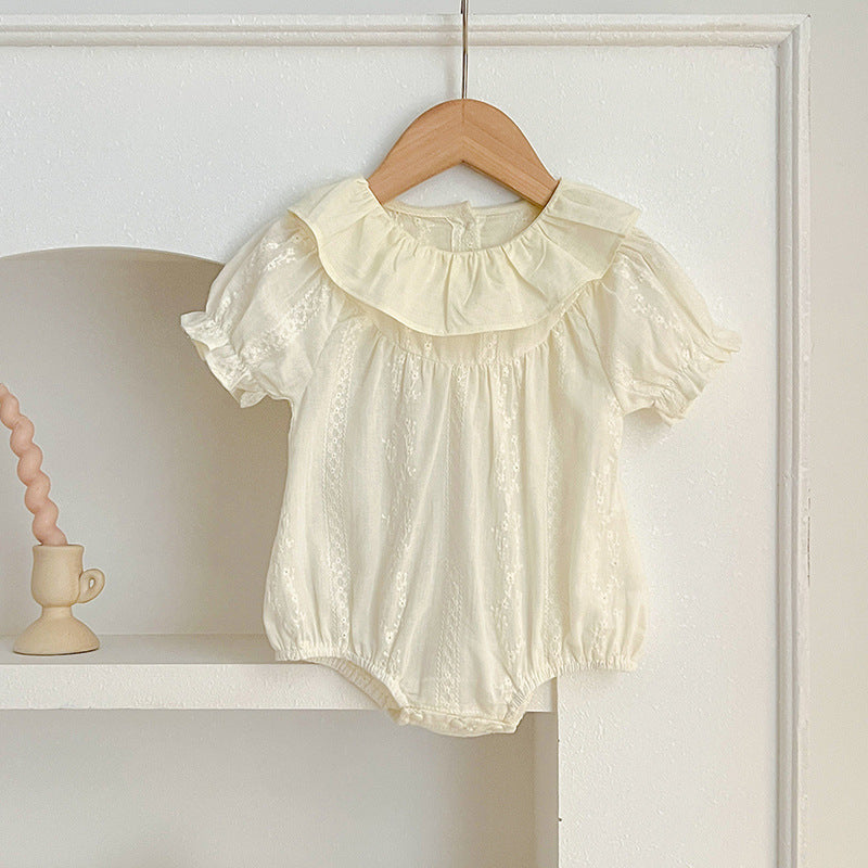 Summer Baby Girls Short Sleeves Floral Pattern Jacquard Dress And Onesie – Princess Sister Matching Set