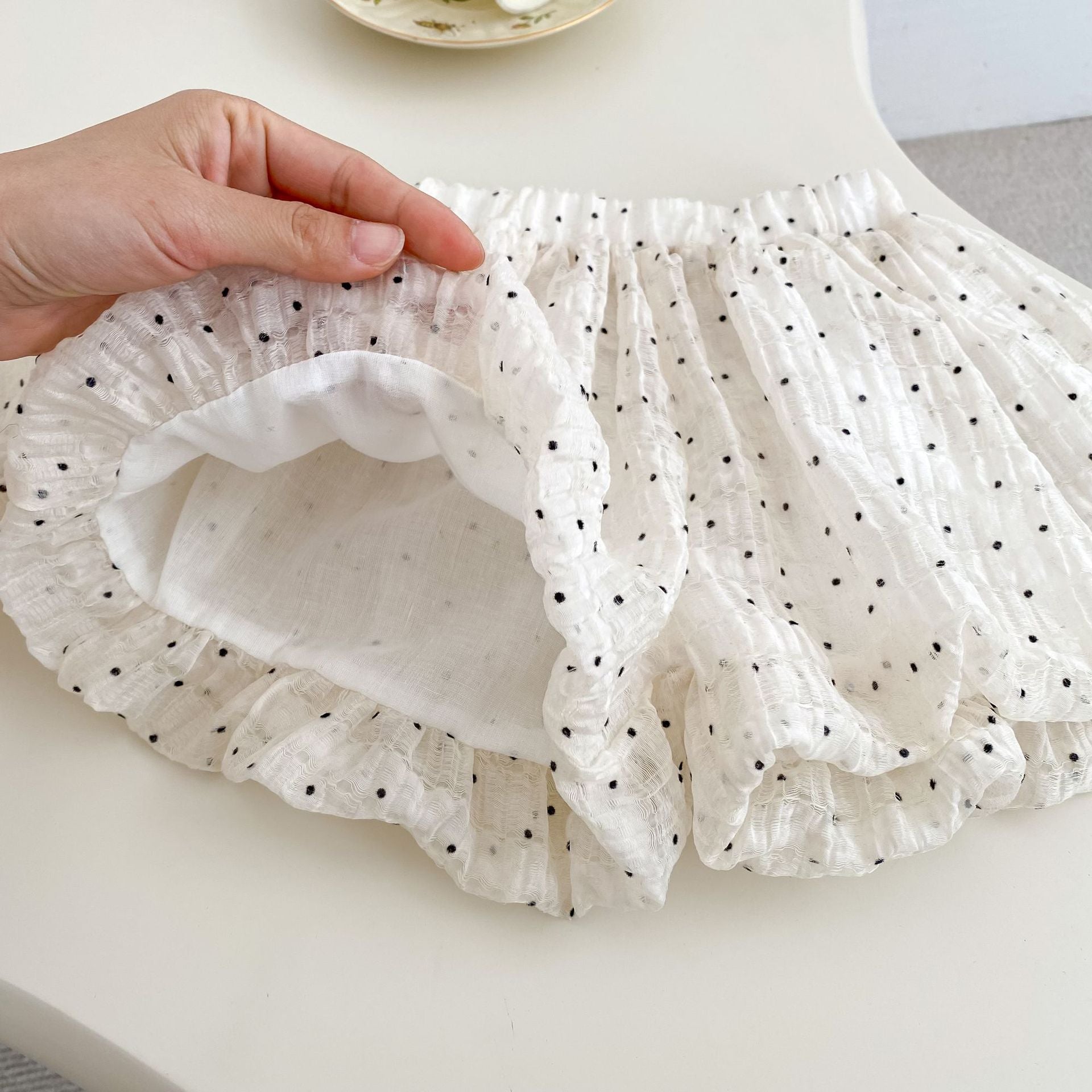 This elegant summer set features a sleeveless top vest and matching shorts adorned with a charming dots pattern, designed specifically for young girls. Crafted for comfort and style, the lightweight fabric ensures breathability on warm days, while the coordinated design offers a polished, put-together look perfect for casual outings or special occasions.