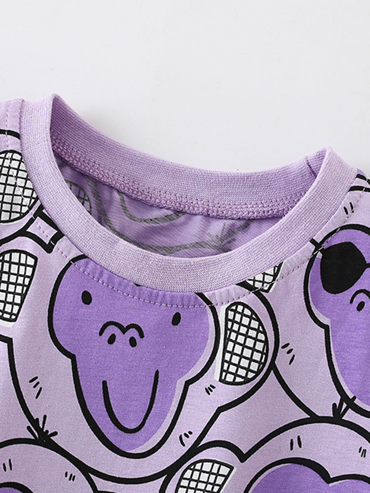 This charming summer set features a short-sleeve T-shirt and matching shorts adorned with a playful cartoon monkey pattern, ideal for young girls. Crafted for comfort and ease, the lightweight fabric ensures breathability during warm days, while the coordinated design offers effortless style. Perfect for casual outings or playtime, this outfit combines practical wearability with a delightful, sophisticated touch.