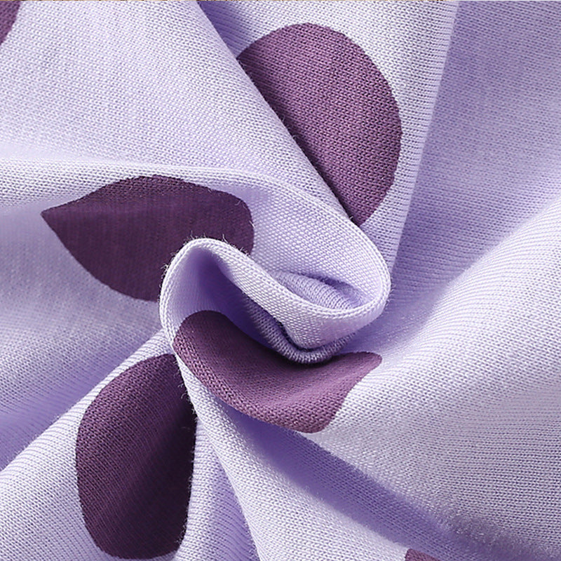 💜 Vibrant Purple Polka Dot Top: Features a cheerful polka dot pattern that adds a fun pop of color and personality.
