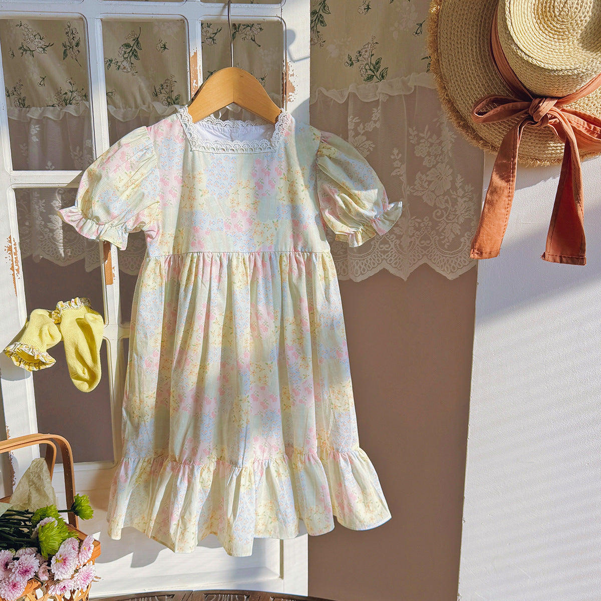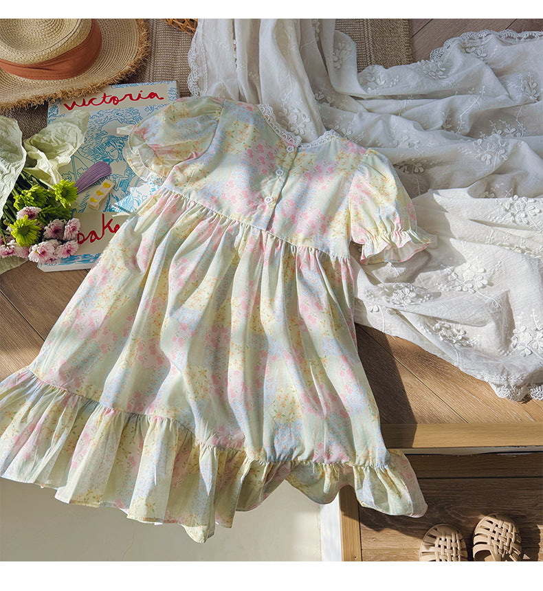 This adorable summer dress features short sleeves and a cheerful floral pattern, perfect for keeping your little girl cool and stylish on sunny days. Made with soft, breathable fabric, it ensures comfort during playtime and outings. Bright and playful, this dress adds a splash of fun to any warm-weather adventure.