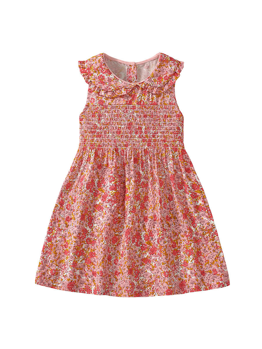 Summer Pure Cotton Floral Pattern Sleeveless Dress for Stylish Girls