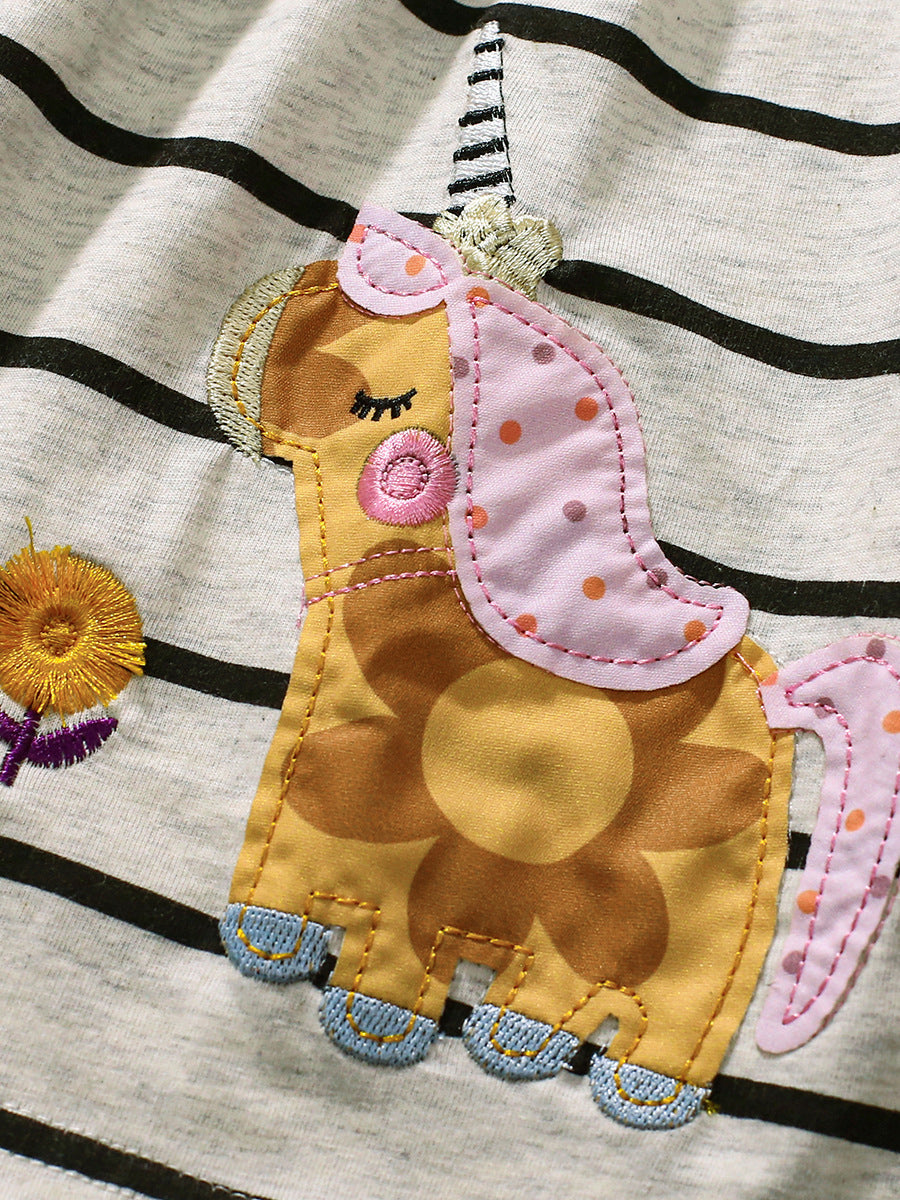 Summer Striped Dress for Girls, European and American Cute Animals Cartoon Pattern Dress