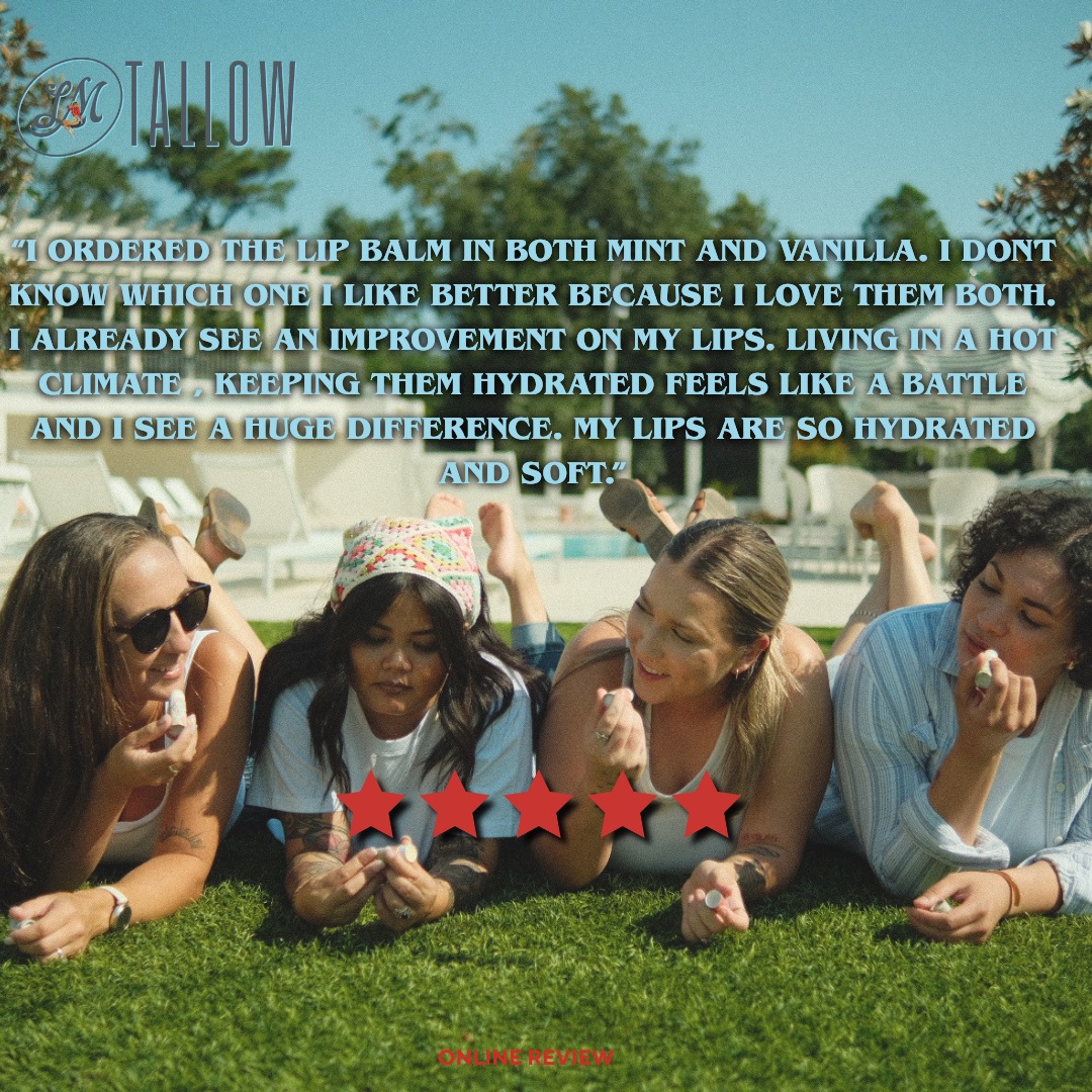We formulate our Tallow lip balm with simple ingredients, real hydration, and packaging that’s kind to the planet. No waste, no nonsense. Just lip care the way it should be. Just like it always was. Welcome back.