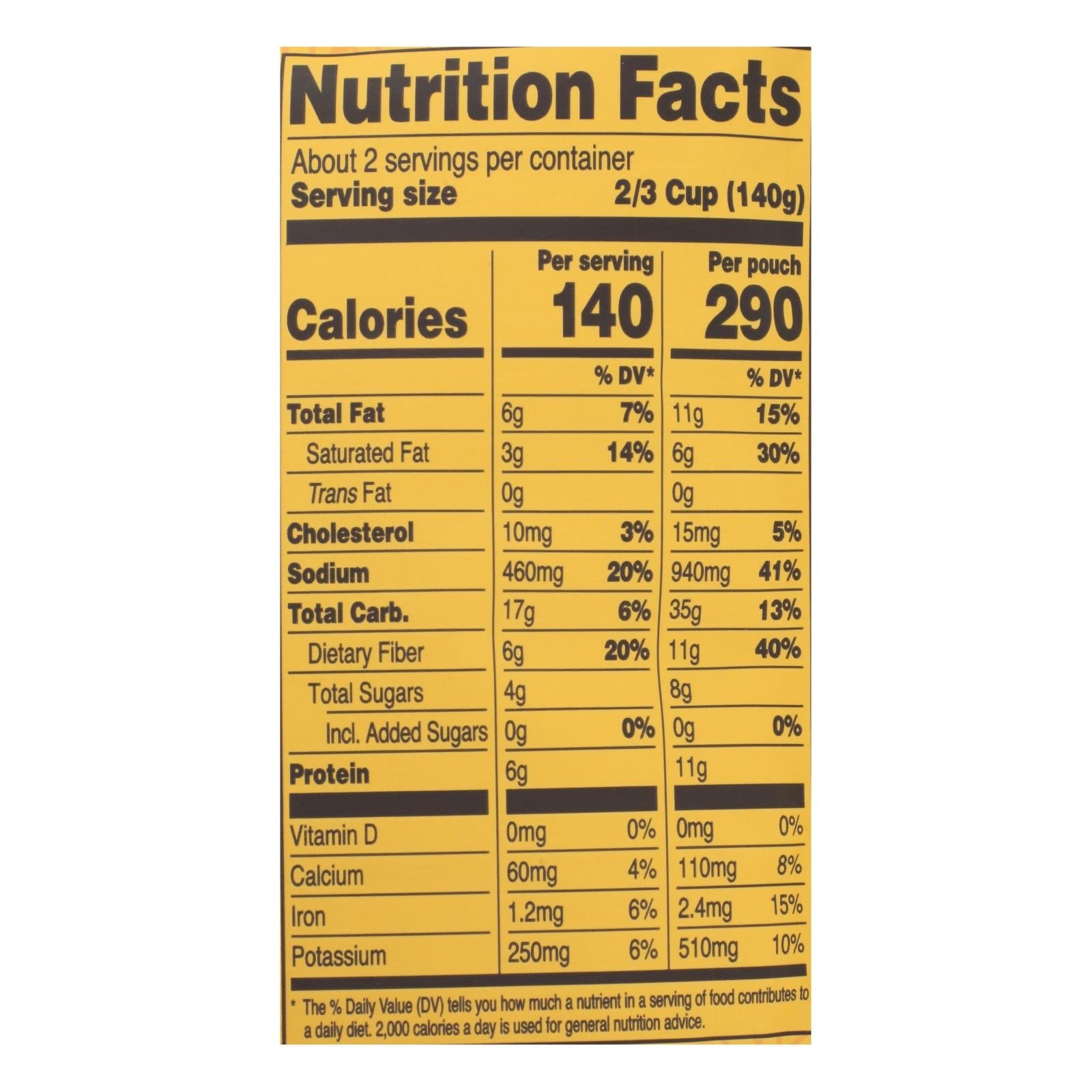 Delight your taste buds with a flavorful Indian dish that combines the rich creaminess of lentils and red beans with aromatic spices, all enveloped in a luscious tomato sauce. This delectable meal is not only kosher and vegetarian but also crafted without any artificial preservatives, ensuring a wholesome dining experience. Each microwavable 10 oz pouch provides two servings, making it a convenient option for a quick lunch or dinner.