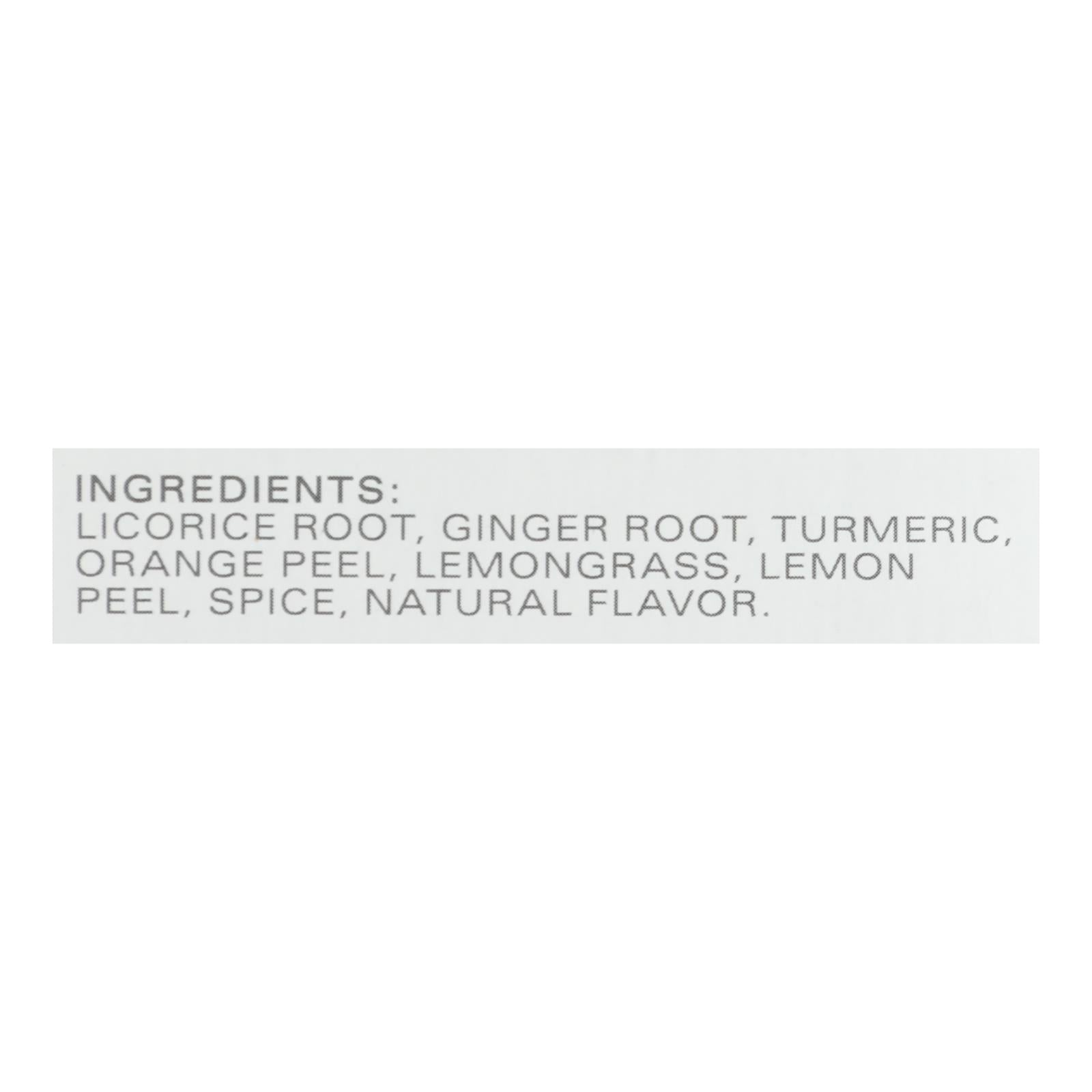 - Soothing infusion of organic turmeric, ginger, and lemongrass