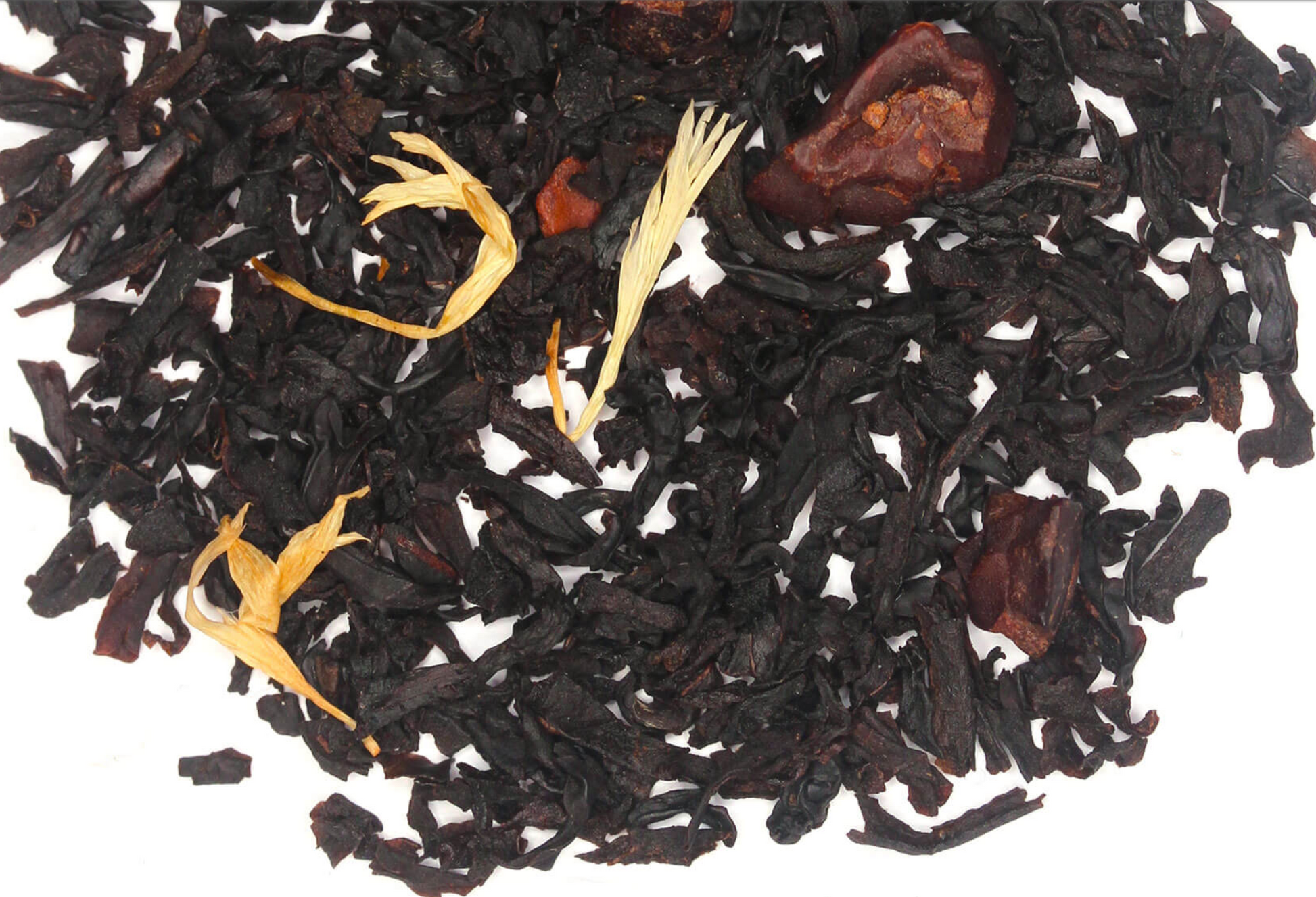 INGREDIENTS: Black Tea, Cocoa Nibs, Caramel Cream Flavor, Creme Brulee Flavor, White cornflowers, Caramel Flavor