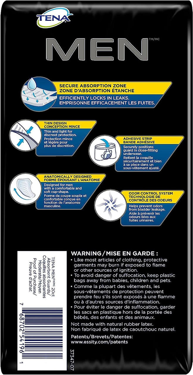 TENA® for Men™ is specifically designed with a cup shape to work perfectly with the male anatomy. An adhesive strip will keep the pad in place and provide discreet and secure protection.
