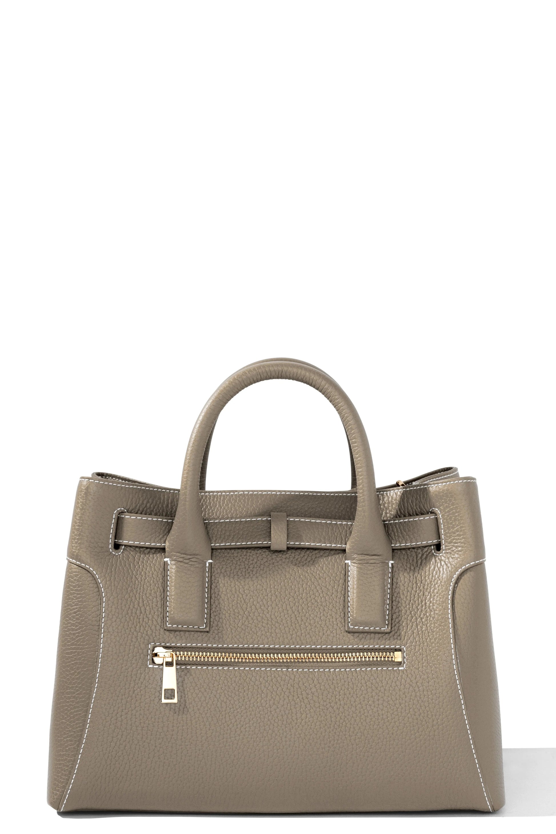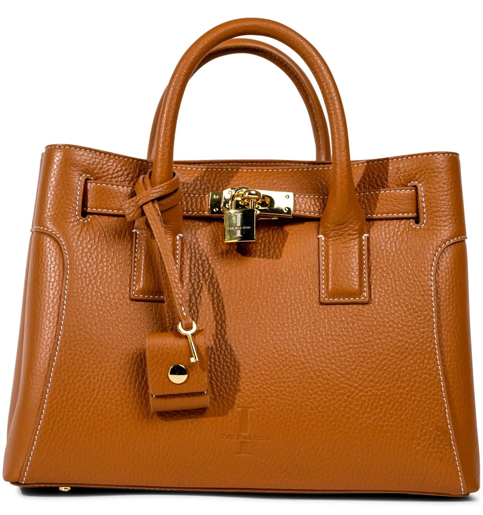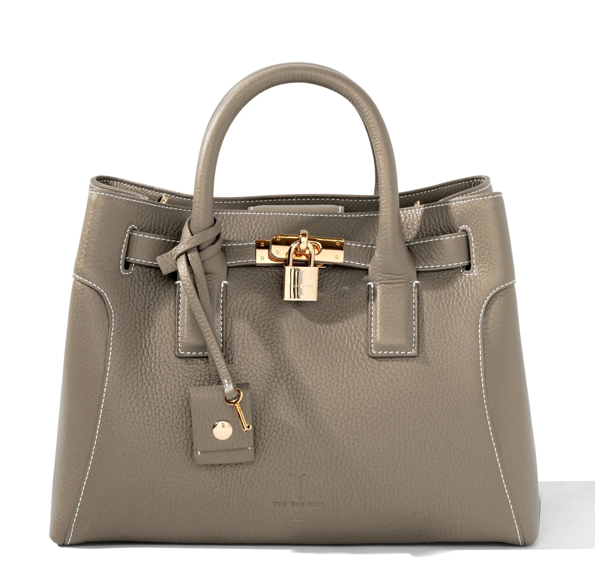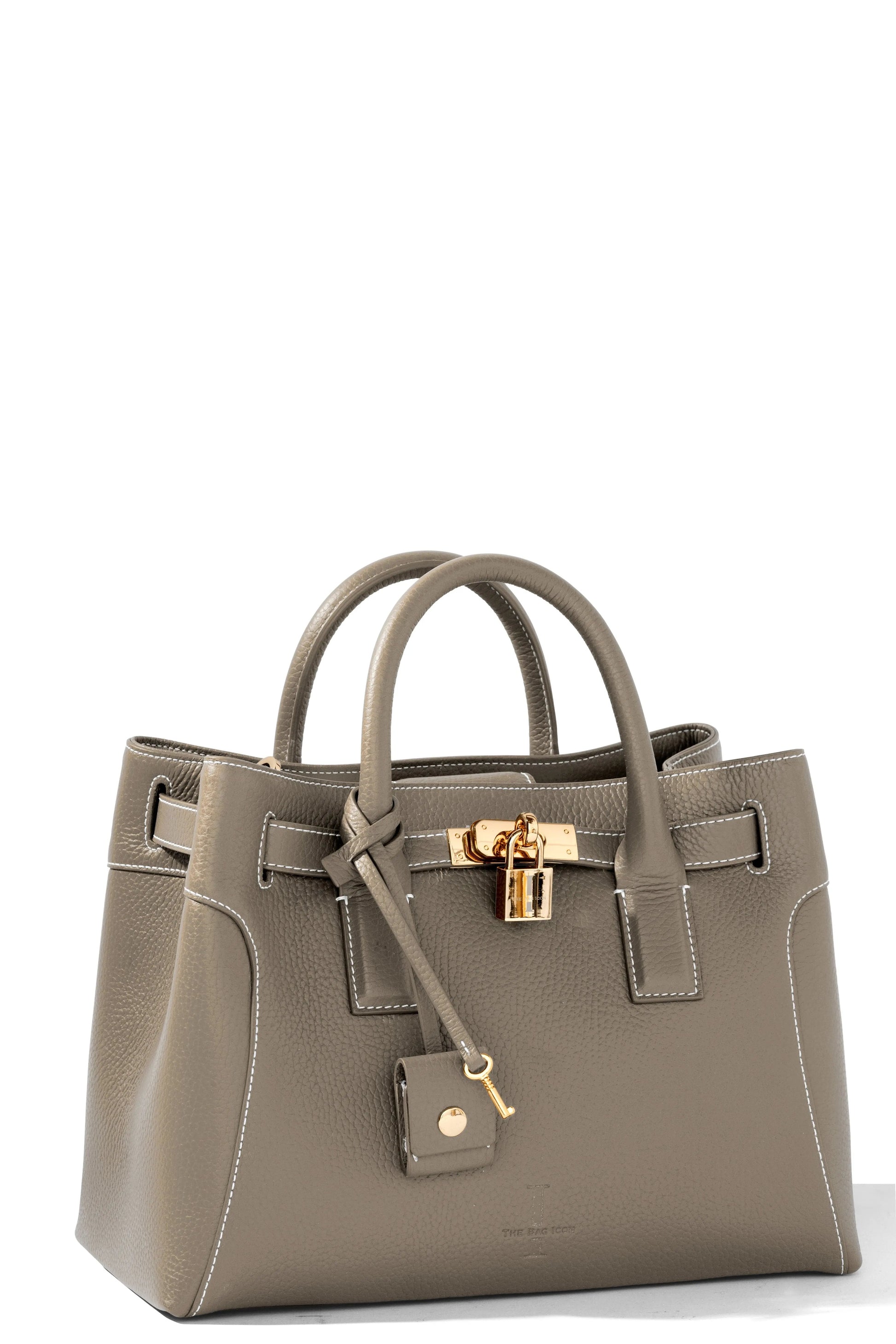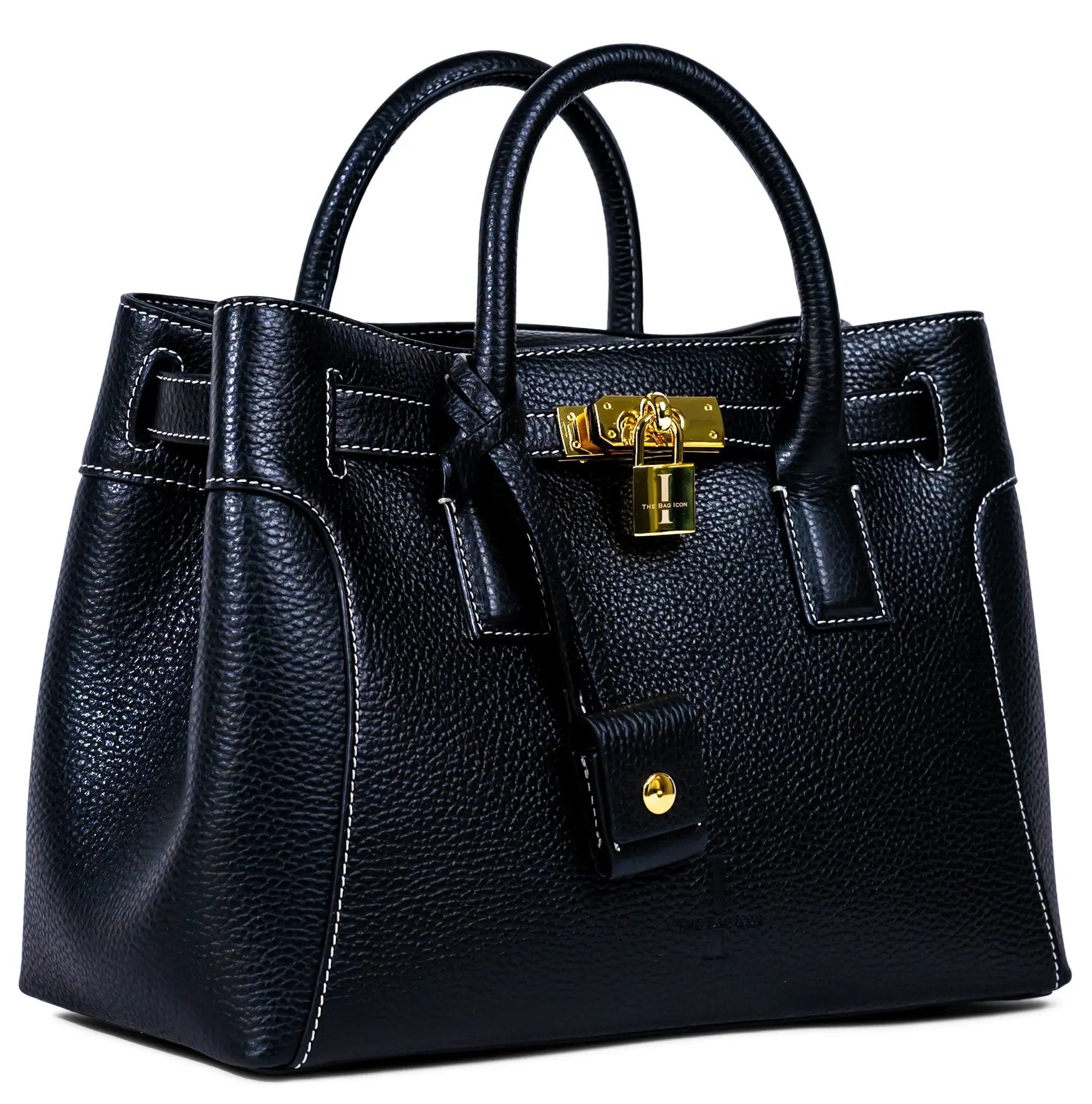 This very special handbag was designed to honor the owner's late mother, SHARON CLAUDIA. Handmade in Italy, this classic tote bag exudes sophistication and features soft yet durable full grain pebbled leather and bold gold hardware.