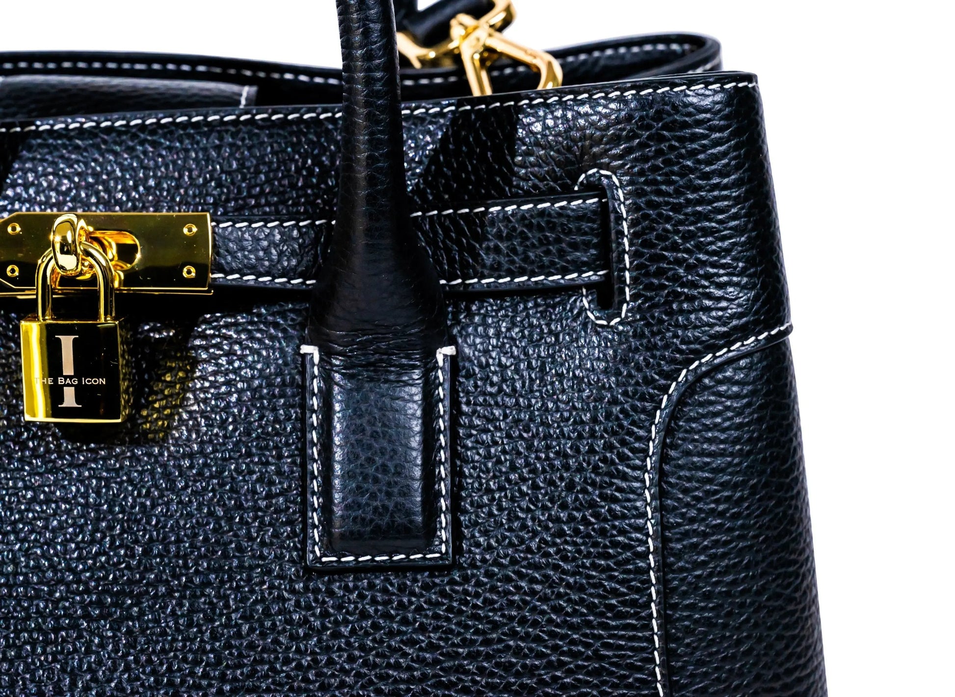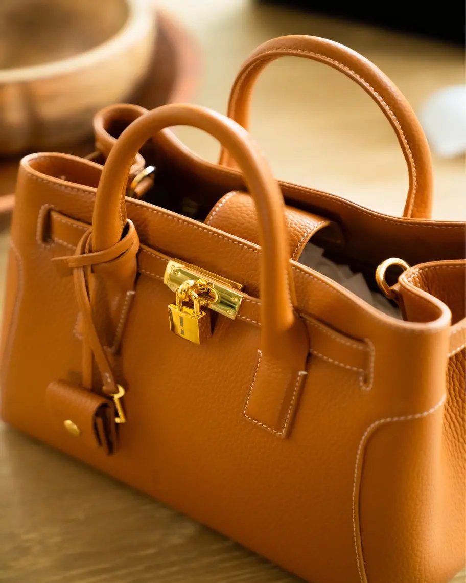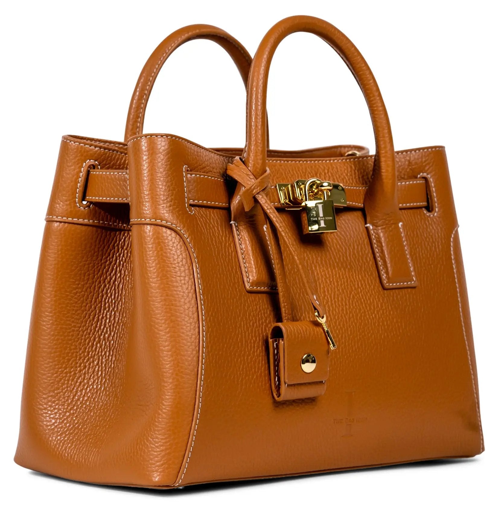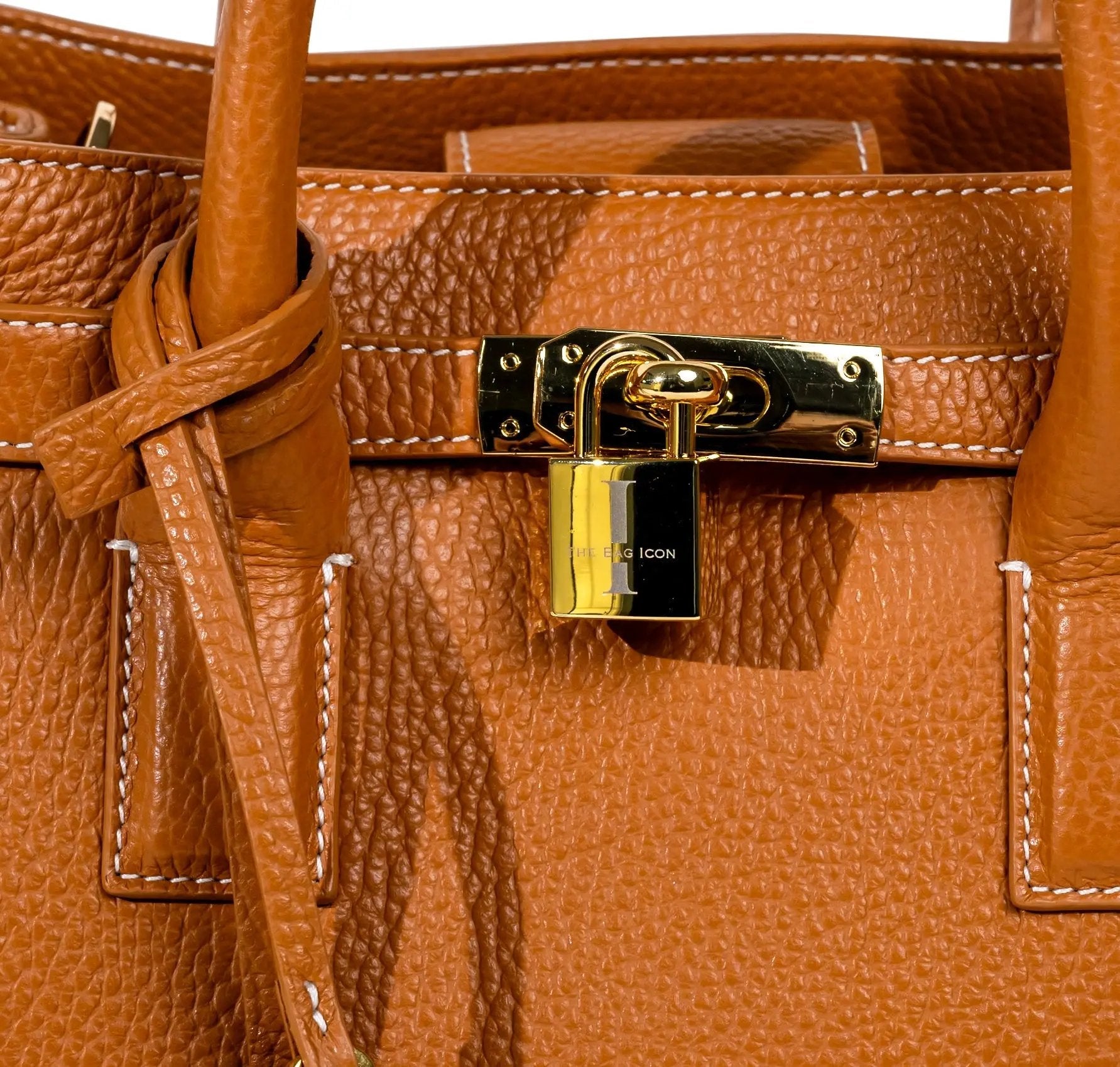 This very special handbag was designed to honor the owner's late mother, SHARON CLAUDIA. Handmade in Italy, this classic tote bag exudes sophistication and features soft yet durable full grain pebbled leather and bold gold hardware.