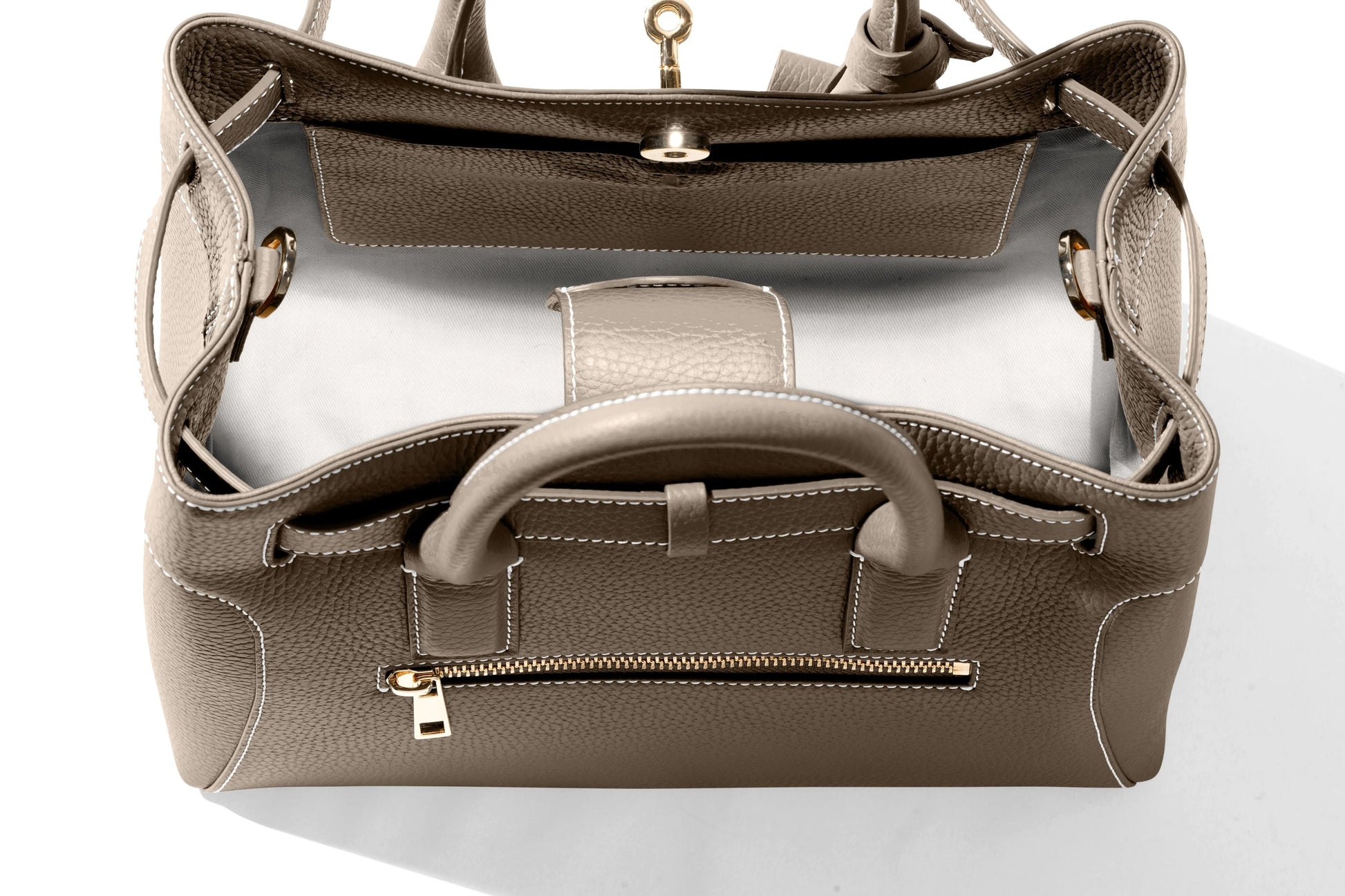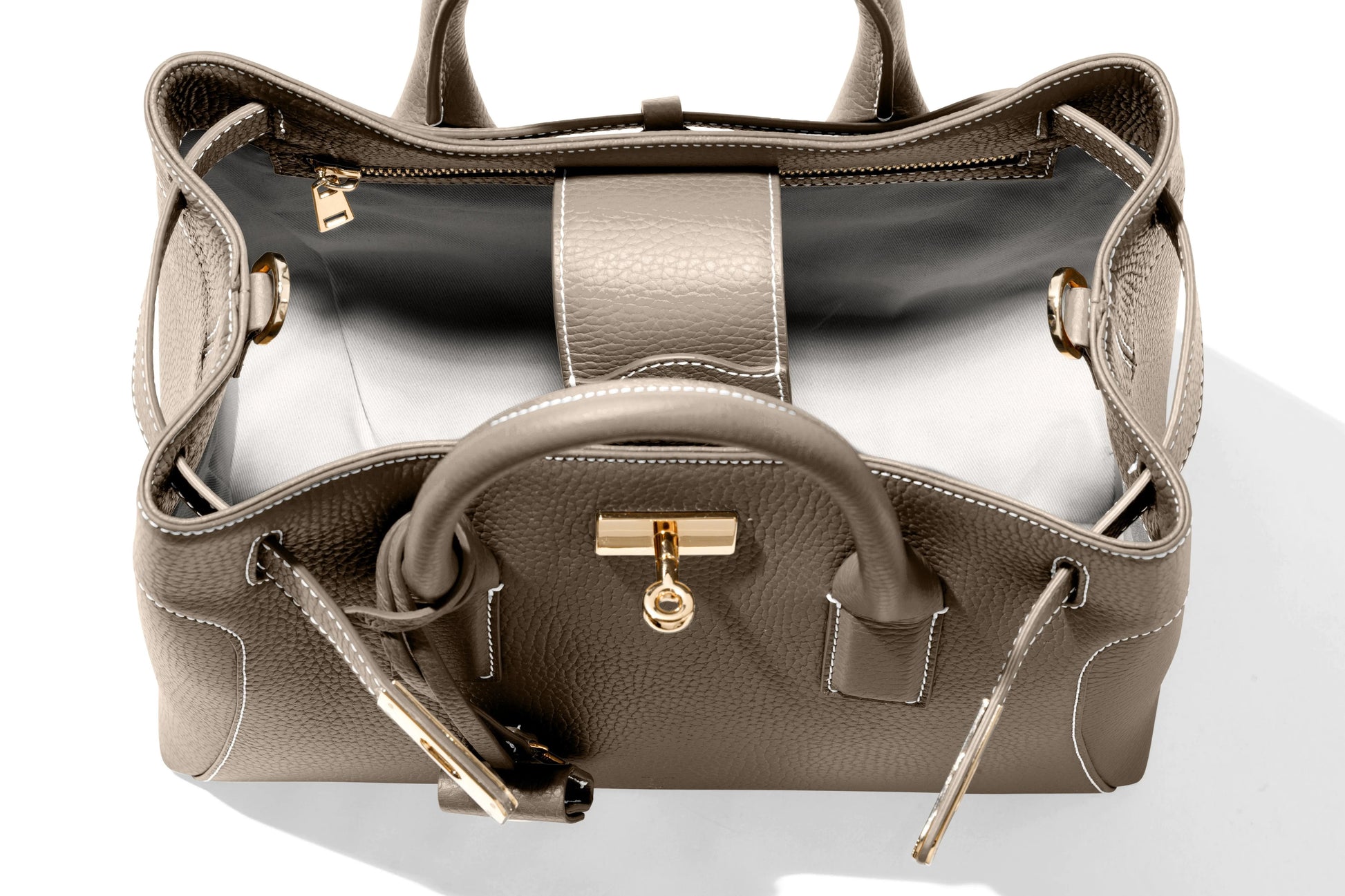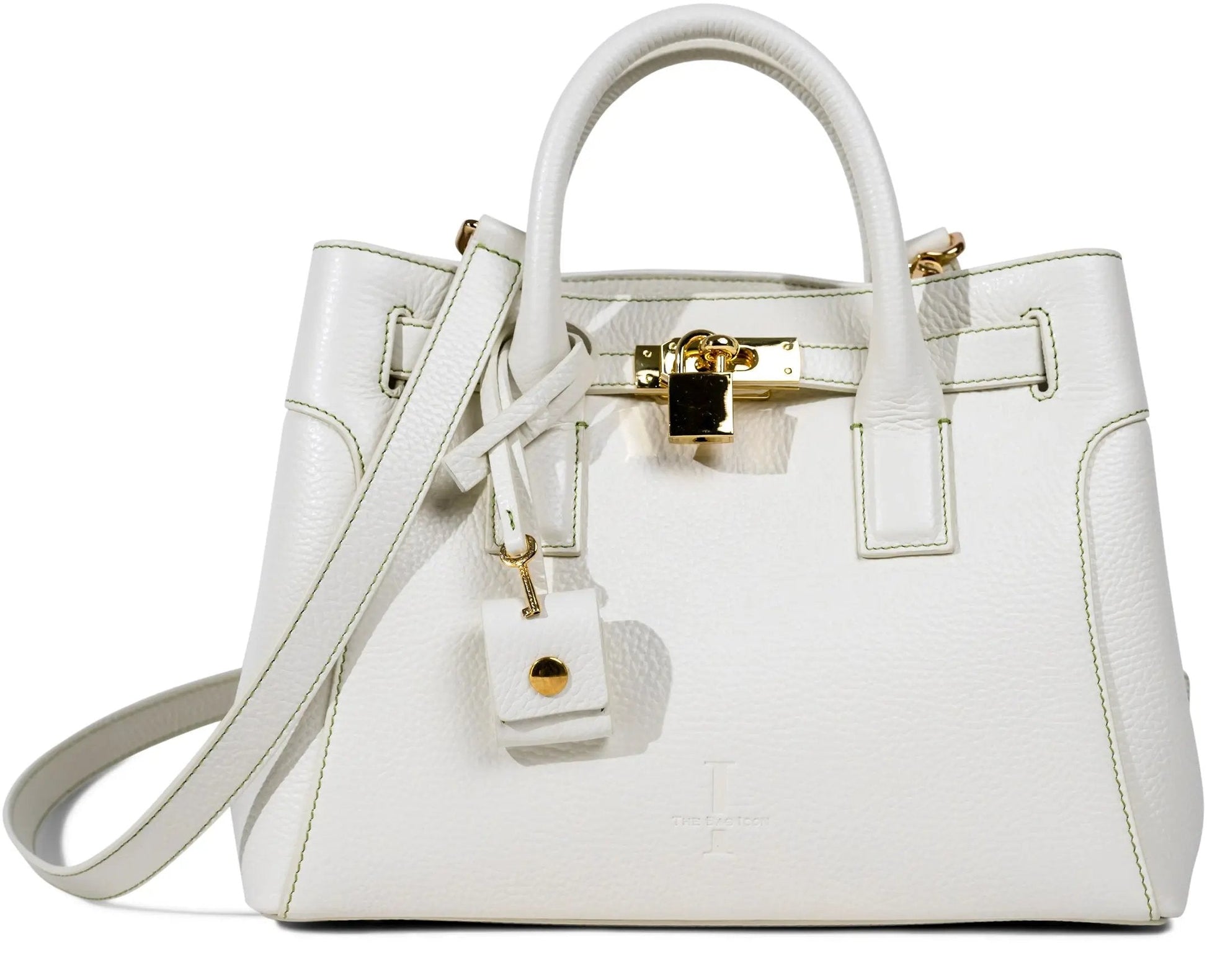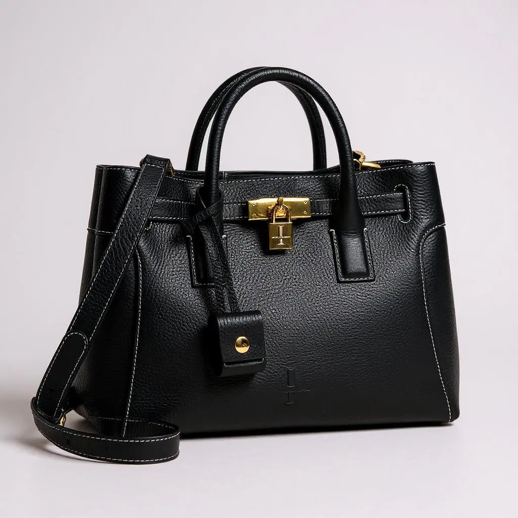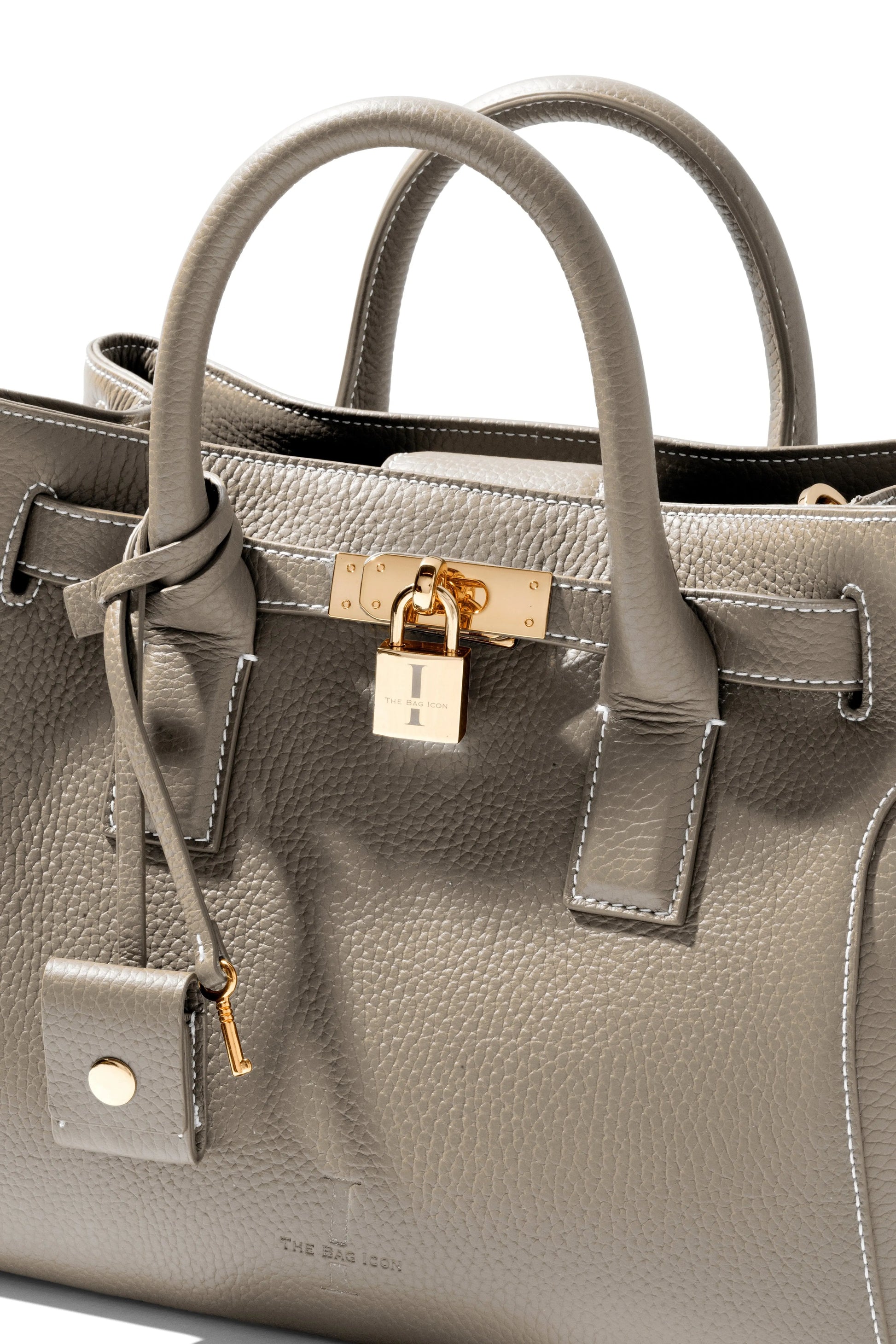 This very special handbag was designed to honor the owner's late mother, SHARON CLAUDIA. Handmade in Italy, this classic tote bag exudes sophistication and features soft yet durable full grain pebbled leather and bold gold hardware.