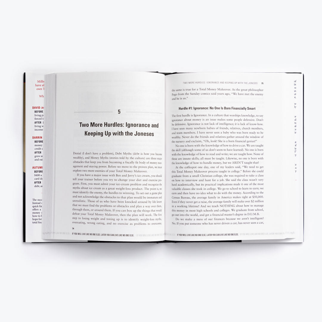Dave condenses his 20 years of financial teaching and counseling into 7 organized, easy-to-follow steps that will lead you out of debt and into a Total Money Makeover. Plus, you'll read over 50 real-life stories from people just like you who have followed these principles and are now winning with their money. It is a plan designed for everyone, regardless of income or age.