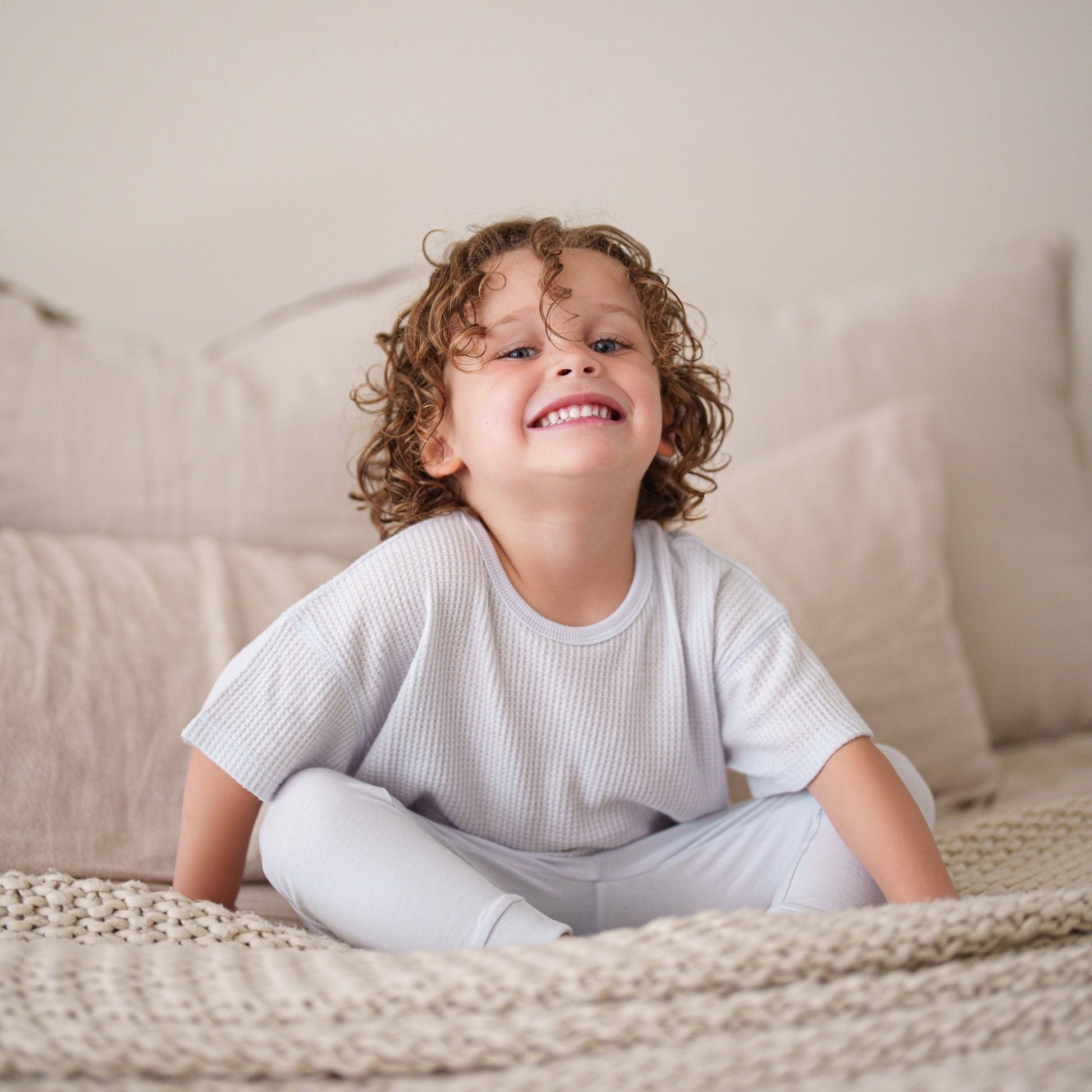 Light and airy, this Thin Waffle T-Shirt is perfect for everyday wear. Made from a soft, breathable waffle-weave fabric, you'll want to just wrap yourself in it. This top keeps your baby comfortable and stylish in a subdued, chic muted pastel palette.