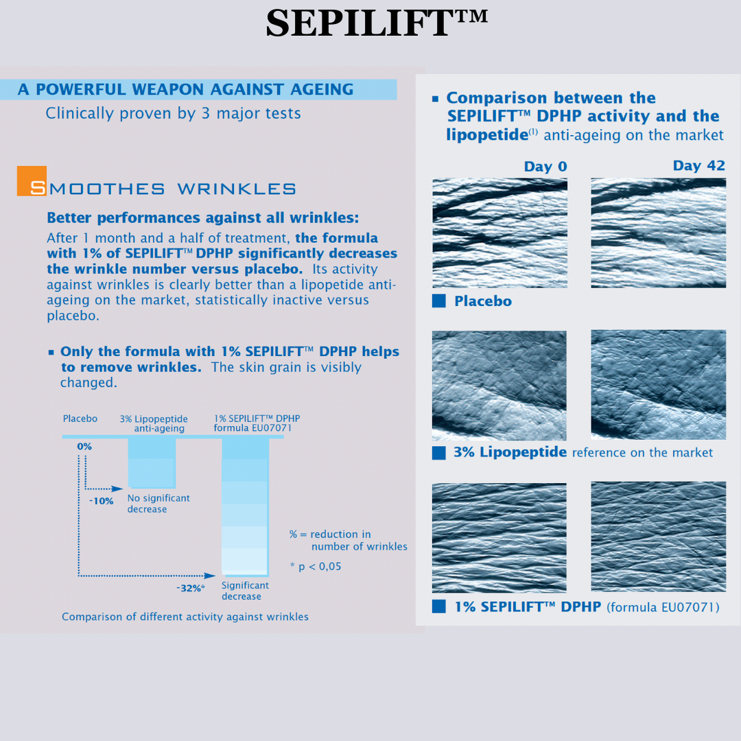 Linefill®– Skin plumping and wrinkle filler ingredient. It is extracted from sesame seeds, a fraction rich in sesamin, through a patented technology. Sesamin has been shown to increase the number and size of adipocytes (skin fat cells), providing more volume to areas that have lost shape over the years. It can effectively fill all kinds of wrinkles and plump lips and improves the overall skin condition for a rejuvenated appearance.