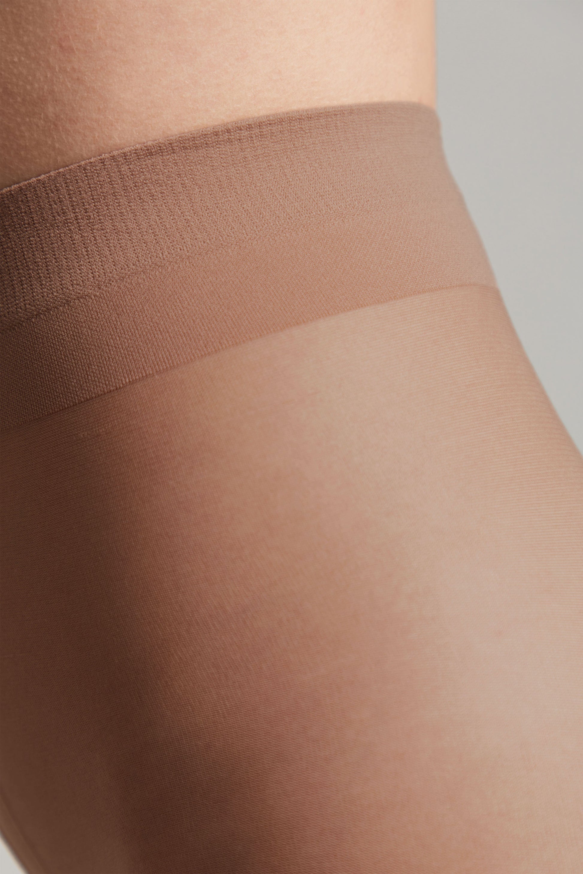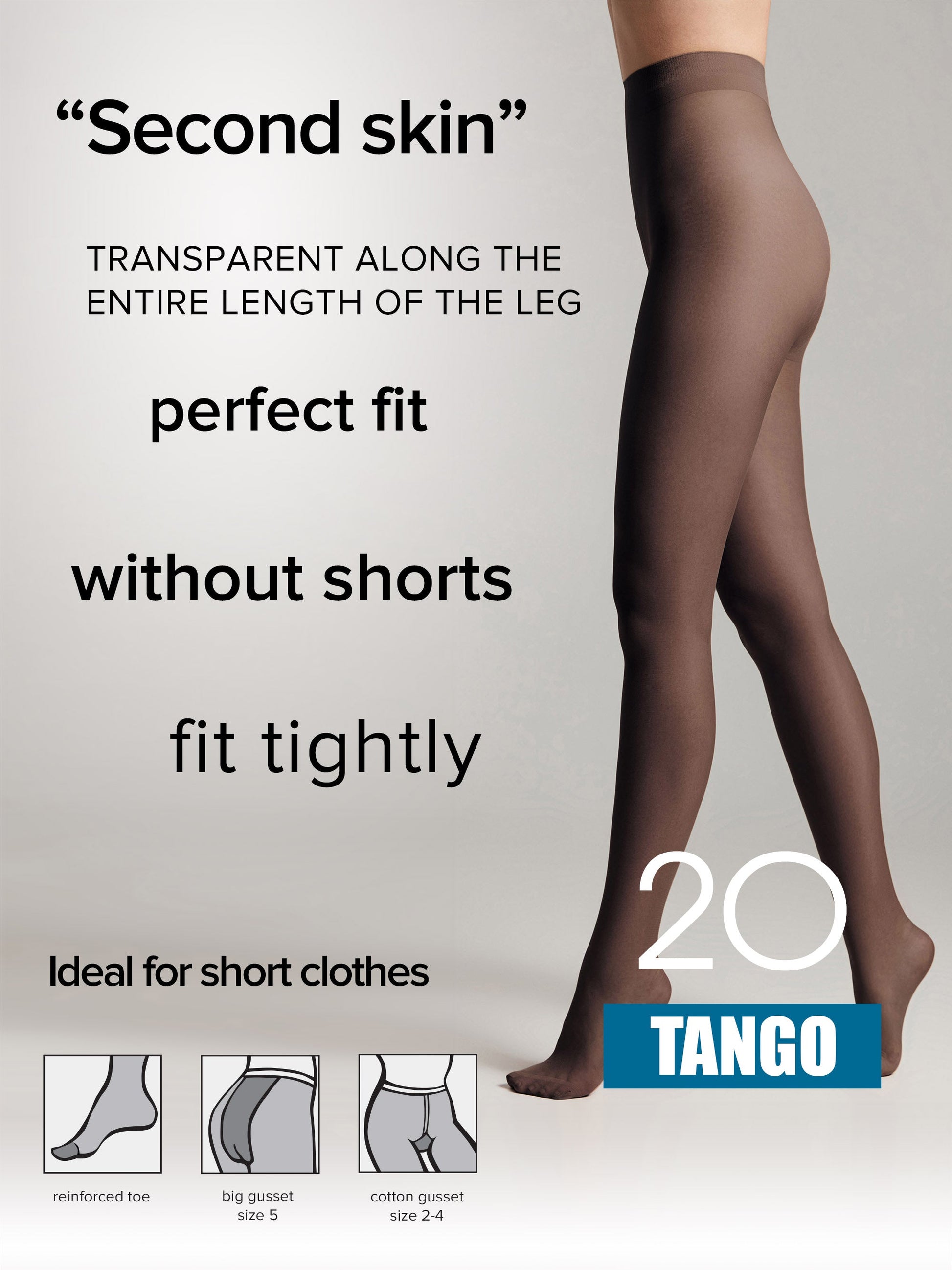 Transparent TANGO tights with a light sheen and “Satin touch” effect give the skin an incredible sensation of softness. They fit snugly while remaining equally transparent along the entire leg. A great option for short outfits.