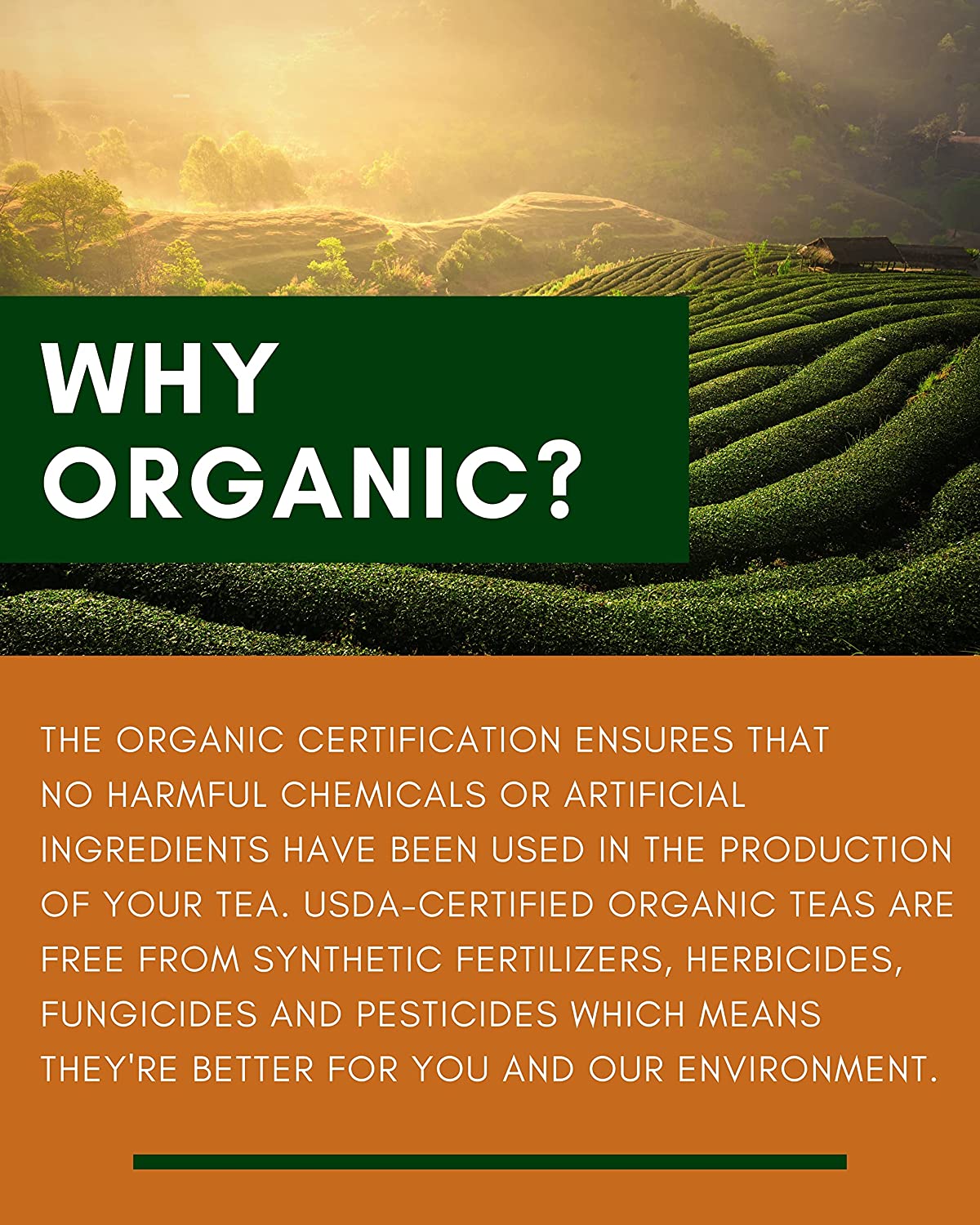- CERTIFIED ORGANIC TEA - USDA Organic products are farmed naturally without the use of any prohibited substances making the product better for consumers and the environment. Our loose-leaf tea is made from only the finest certified organic ingredients