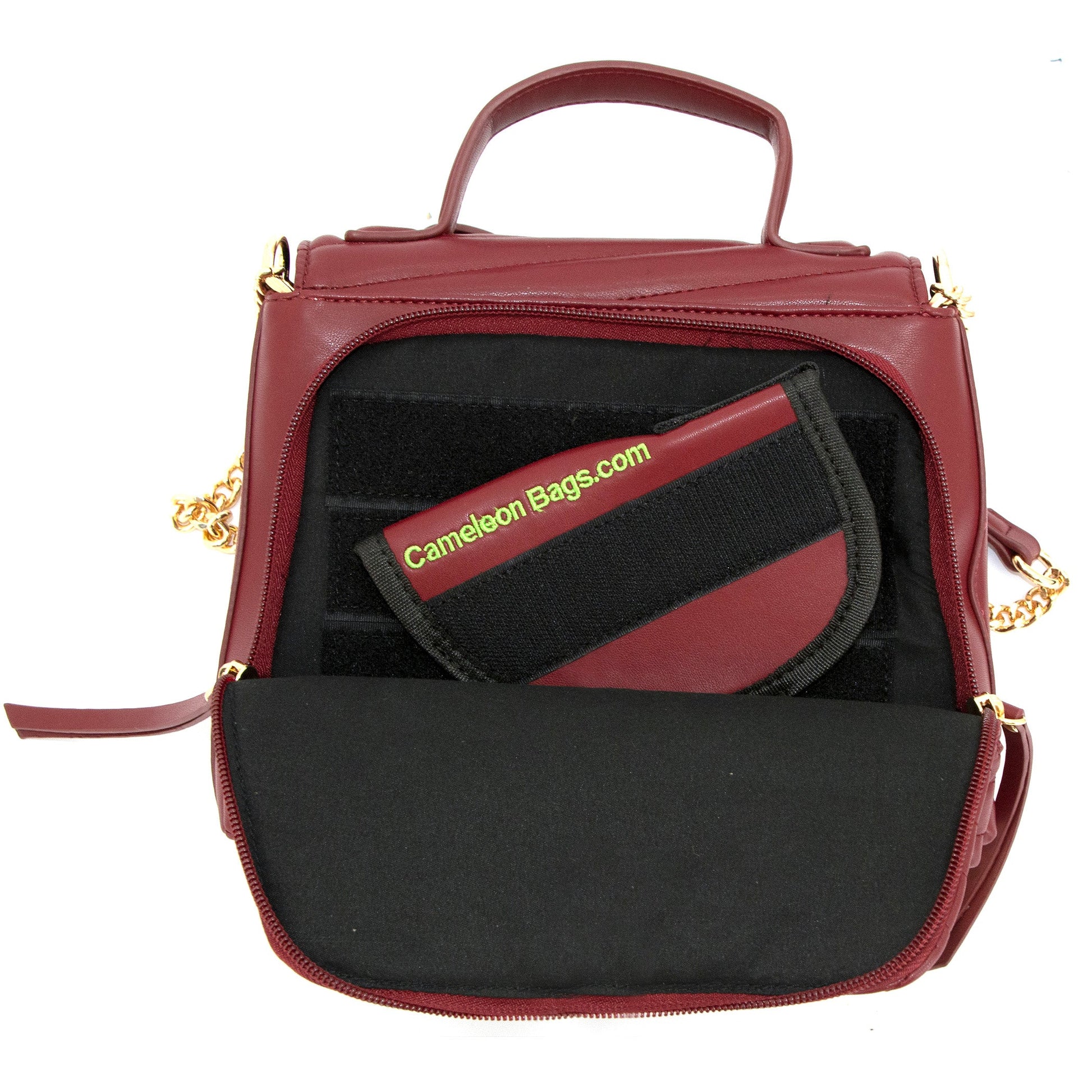 The Cameleon Venus gives you everything you need in a compact personal protection purse. The compact size allows you to minimize what you carry, while still allowing you to stay prepared. We have included the Cameleon Tail to hold your Pepper Spray or Mace and each bag comes with a secure holster for your firearm.