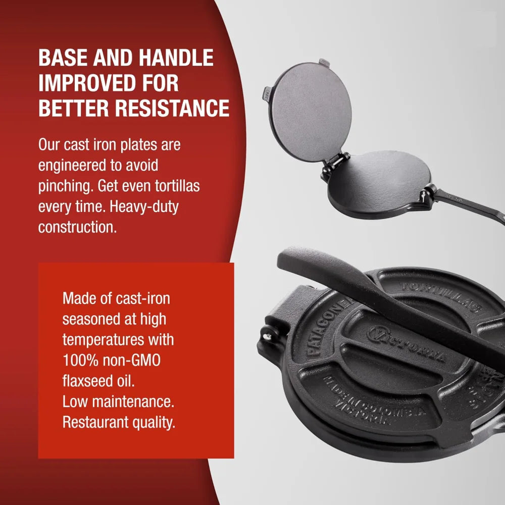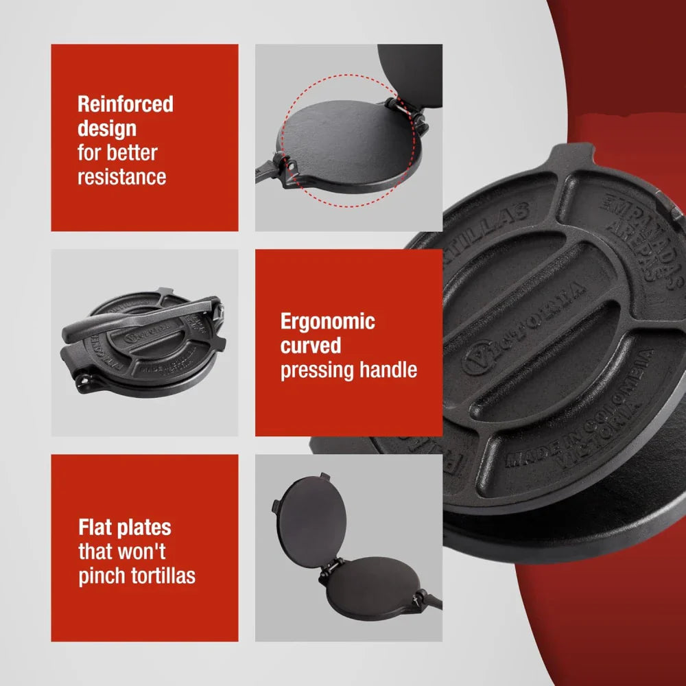 - Tortilla Press: This product features a Victoria 8" Tortilla Press, designed to make authentic homemade tortillas with ease.