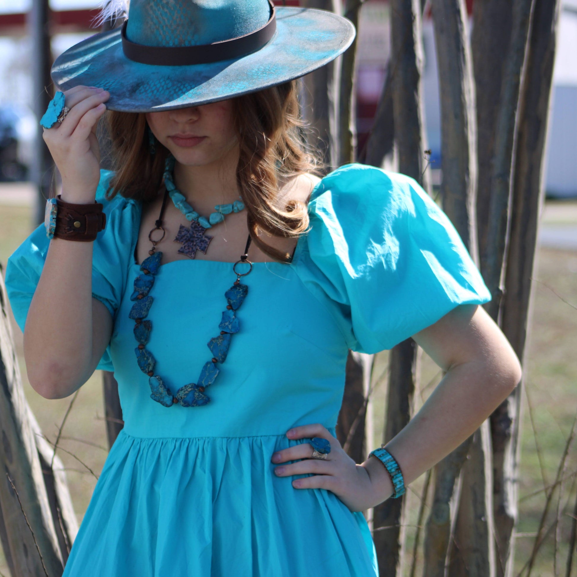 Elevate your style with our handcrafted Woven Regalite Stacked Stone Bracelet. Made with stunning turquoise stones, this boho-inspired bracelet adds a touch of western flair to any outfit. Expertly woven for a unique and textured look, making it a must-have accessory.