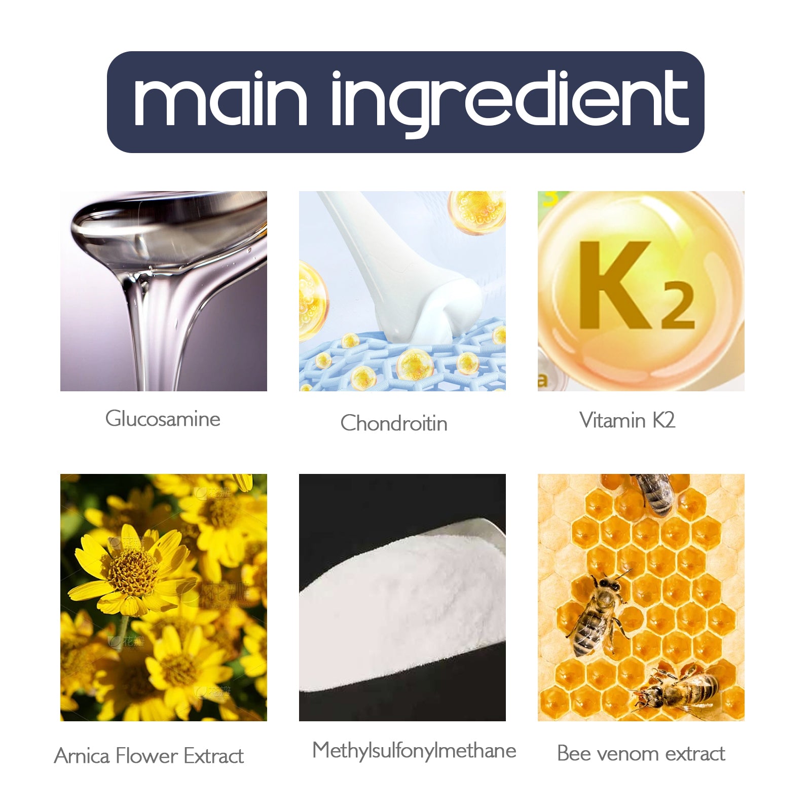 Our bee venom joint cream contains glyceryl stearate, carbomer, bee venom. It can repair damaged tendons, relieve various aches and pains, eliminate stiffness, correct deformities, eliminate cysts, stimulate the regeneration of damaged cells and tissues, and aid in the healing process. Its application is simple: clean and dry the affected skin; Apply proper amount of the cream evenly on the skin; Use the hand in a circular motion, gently massage to absorb; For better results, use 2-3 times a day. Bee Venom Joint Cream uses advanced transdermal technology that allows its active ingredients to effectively penetrate the skin barrier and target subcutaneous tissue. Bee venom is known for its anti-inflammatory and analgesic properties, which can reduce inflammation and pain associated with joint and bone injuries.