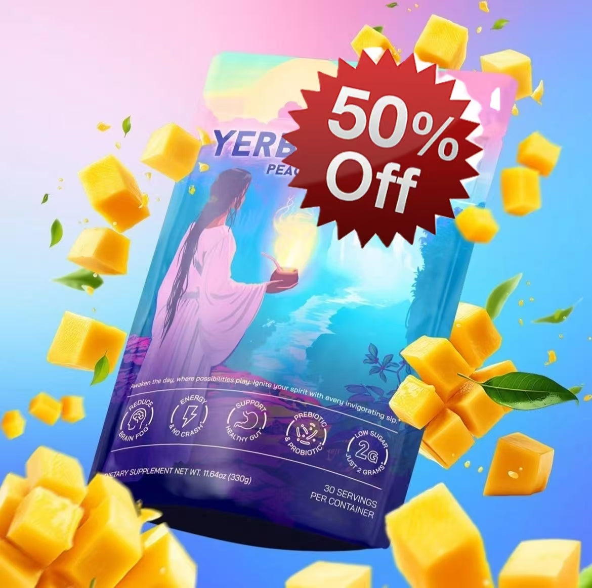 Yerba Mate Instant Powder, 3-in-1 Super Drink - Clean Energy, Brain Fog Buster, and Gut Health Powered by Nootropics, Prebiotics and Probiotics | Yerba Magic Peach Mango 30 Servings