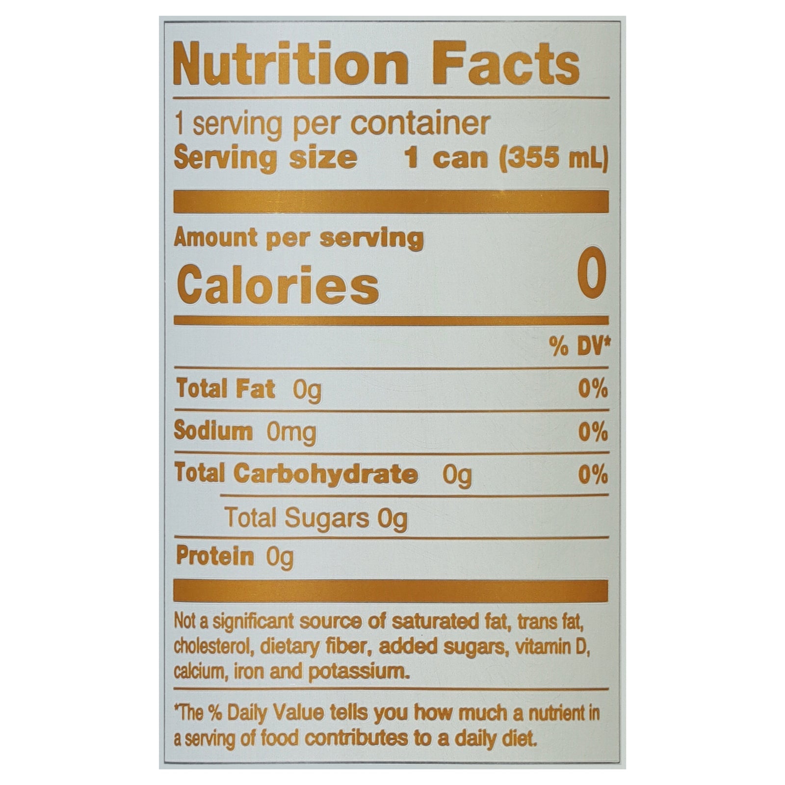 - Ingredients: Carbonated water, citric acid, natural flavors, stevia leaf extract